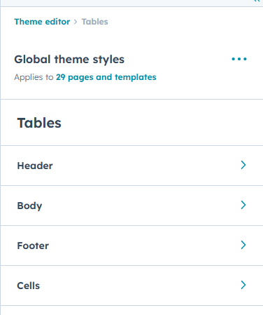 Use this section to control the styling and appearance of tables used across your website, ensuring clarity and readability for technical or data-driven content.